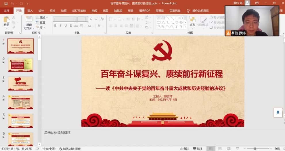 首先,支部与会党员重温入党誓词,由郑铿城同志领誓。并由张燕同志领读《中国共产党章程》关于党的性质、最高理想和最终目标、行动指南以及党的指导思想等内容。线上党员同志陈罗炜围绕《中共中央关于党的百年奋斗重大成就和历史经验的决议》对全体党员开展党史学习教育互动交流。全体党员现场交纳党费。