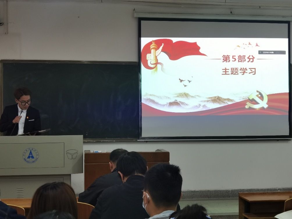 丁世昱同志领学《中共中央政治局常务委员会召开会议 分析新冠肺炎疫情形势 部署从严抓好疫情防控工作》,他号召:“作为学生的我们,积极做好安全防护措施,外出一律戴口罩,及时向单位和组织报告身体状况,自觉做好疫情筛查检测。带动身边人减少外出,尽量不到人员密集的场所。用模范行动展现共产党人的精神风范。”