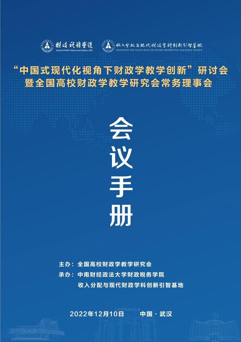 【会议通知】“中国式现代化视角下财政学教学创新”研讨会暨全国高校财政学教学研究会常务理事会会议议程
