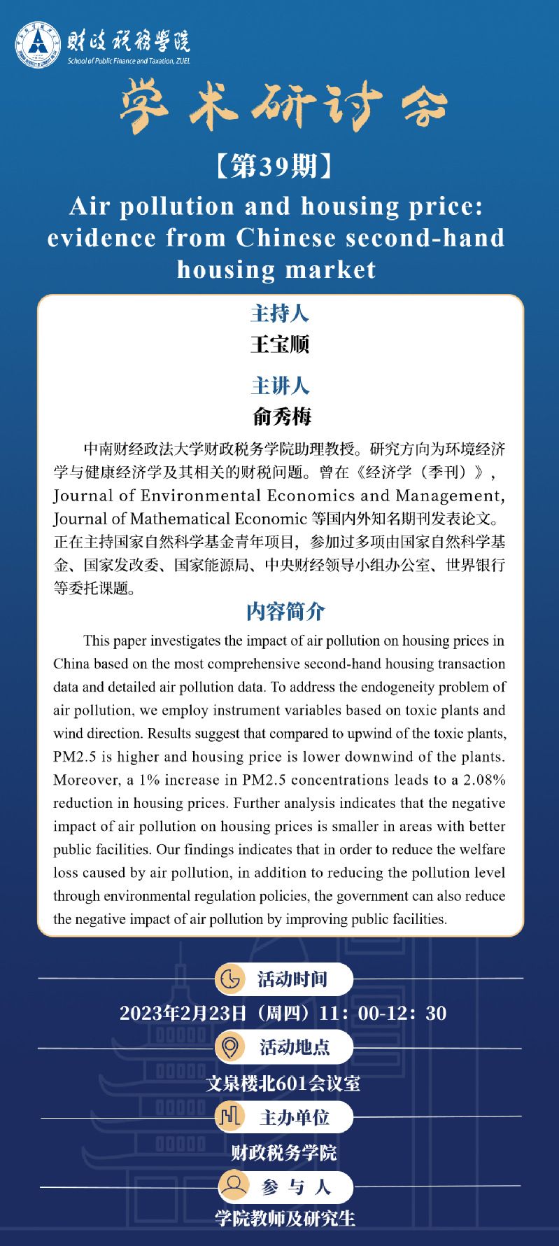 【讲座预告】学术研讨会(第39期)