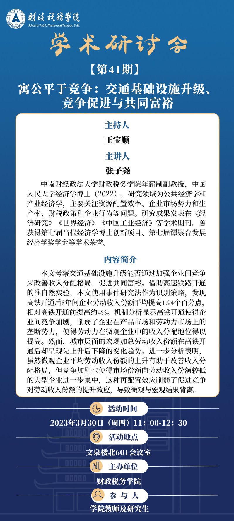【讲座预告】“财”思泉涌·学术研讨会(第41期)