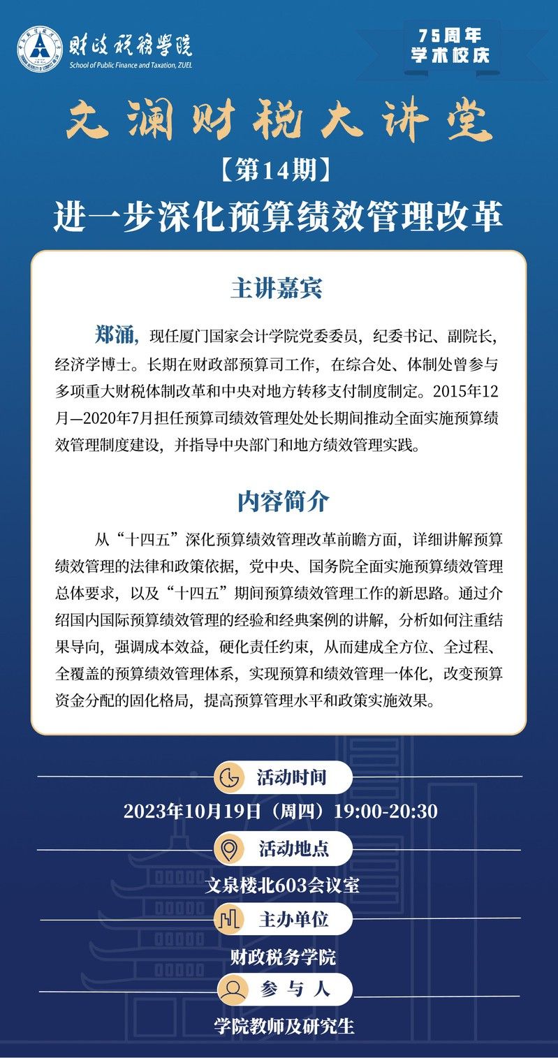 75周年学术校庆讲座 | 文澜财税大讲堂(第14期):厦门国家会计学院郑涌副院长