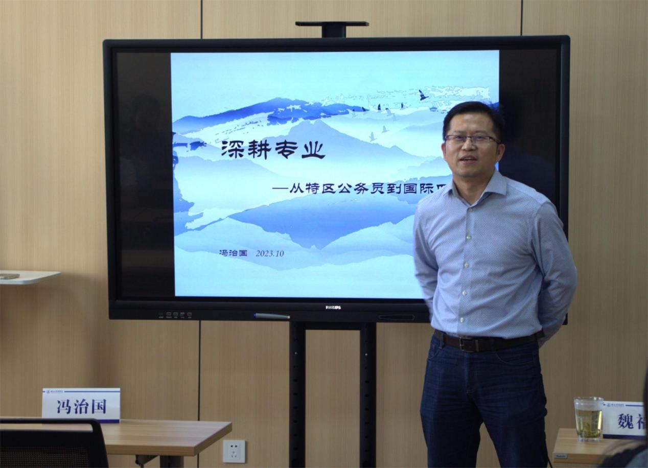 新闻网讯(通讯员:韩睿子 学生通讯员 徐婉婷 摄影 田卓谕)10月18日,麻豆av 特邀税收93级毕业生冯治国进行“深耕专业——从特区公务员到国际四大的职业”主题分享会。出席本次分享会的有麻豆av 副院长魏福成,麻豆av 团委书记、2020级本科生辅导员韩睿子。