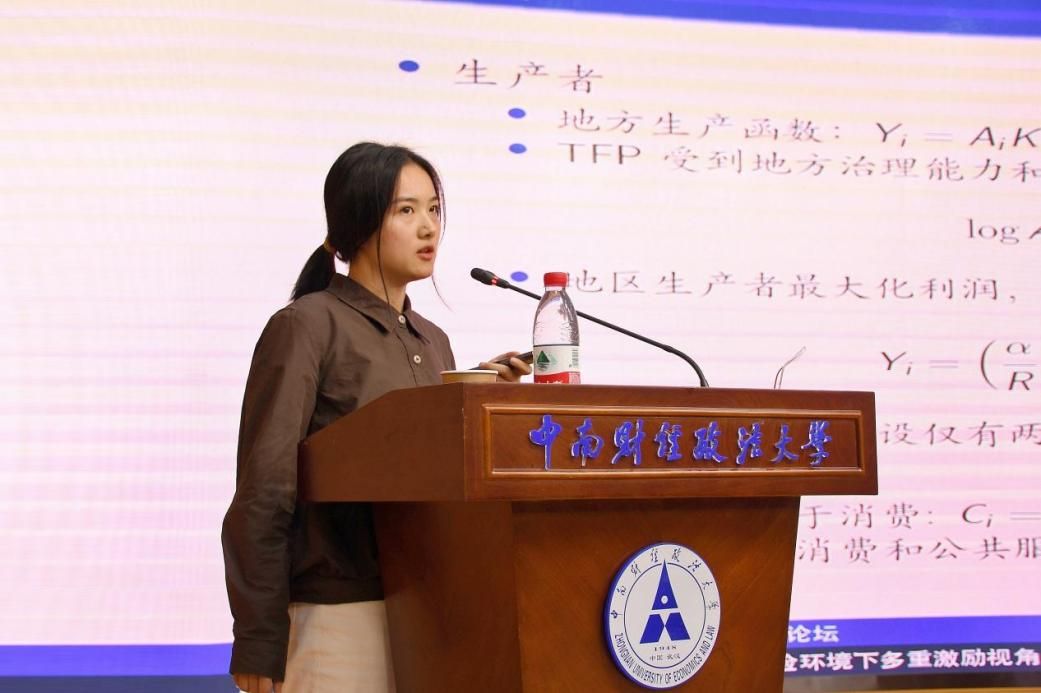 随后,王筱筱老师带来《地方治理框架下最优转移支付设计——风险环境下多重激励视角的分析》主旨演讲。王老师基于转移支付与地方治理激励背景,研究如何优化转移支付制度以缓解地方政府治理过程中出现的问题。通过研究得出结论:一是最优边际转移支付由地方风险厌恶程度和地方政府的自我保障能力、央地激励相容成本、中央的再分配偏好以及地方税收留成率决定;二是最优转移支付大幅提升了非生产性公共品的水平,改善了地区间公共服务均等化。