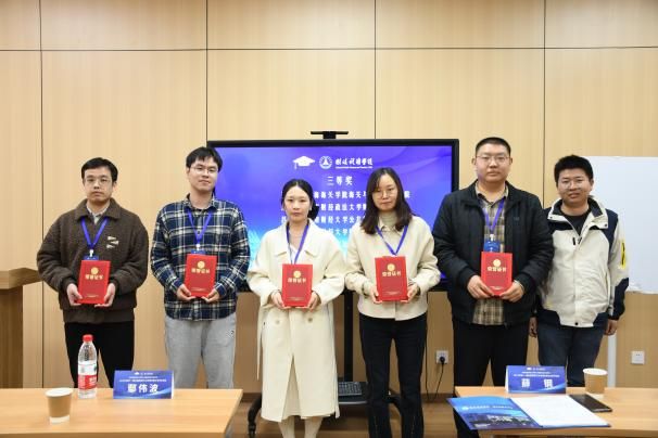 欧阳洁老师为三等奖获得者王希瑞、刘刚、吕丛睿、涂训华、郭伟铨颁奖