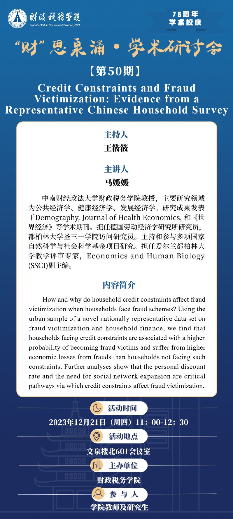 75周年学术校庆讲座 | “财”思泉涌·学术研讨会(第50期)
