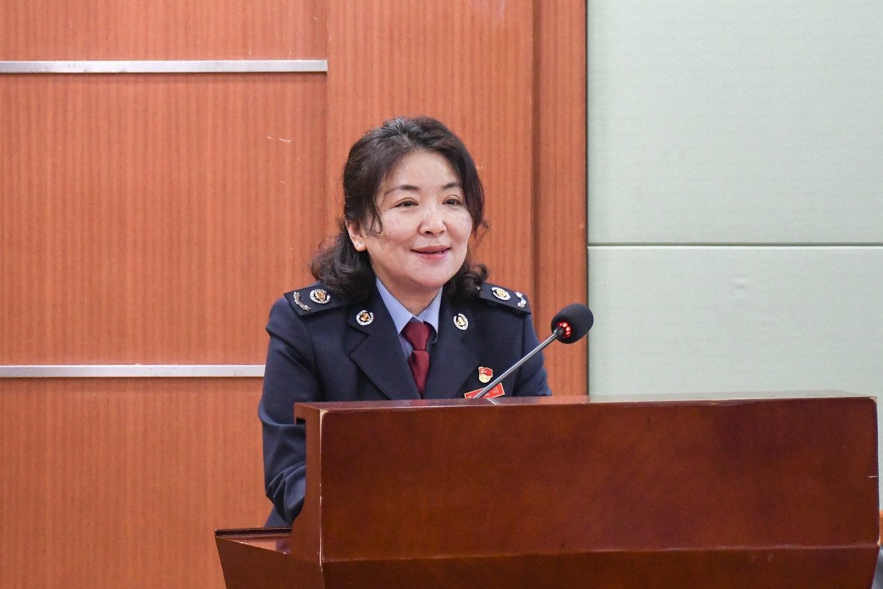 洪山区税务局副局长张薇薇致辞。张薇薇首先对学院及各位参会同学表达了衷心的感谢。随后,她详细介绍了此次税收宣传月活动的四项核心环节,并特别强调了财税学院作为本次活动第一站的重要地位,张薇薇希望此次活动能进一步加强税务局与学院之间的合作与交流,共同推动税收工作的深入发展。