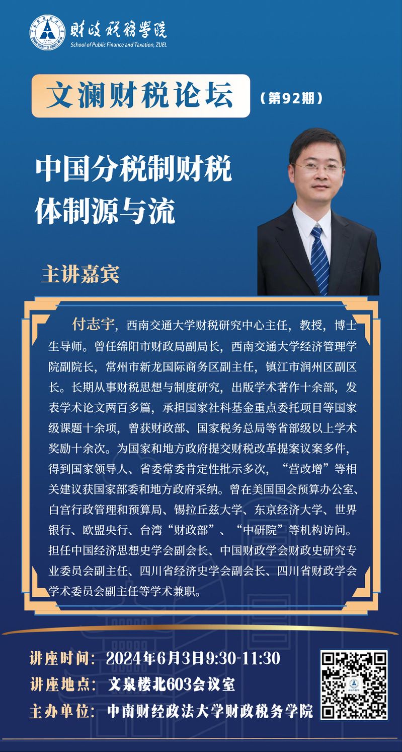 文澜财税论坛(第92期)| 西南交通大学财税研究中心付志宇教授