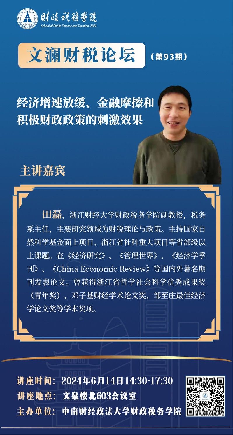 文澜财税论坛(第93期)| 浙江财经大学田磊副教授