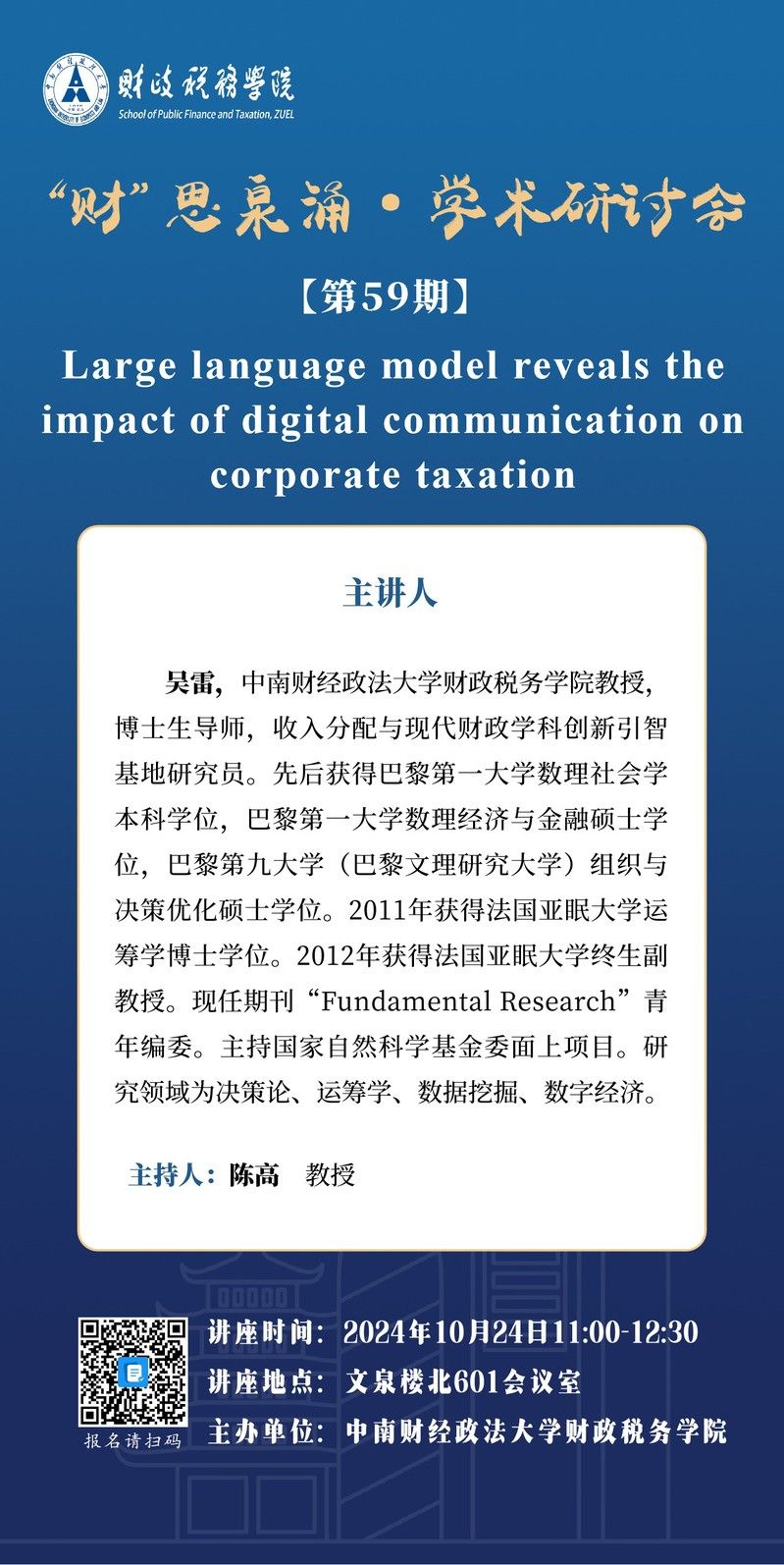 【讲座预告】“财”思泉涌·学术研讨会(第59期)