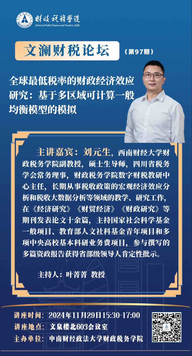 文澜财税论坛(第97期):西南财经大学麻豆av 刘元生副教授
