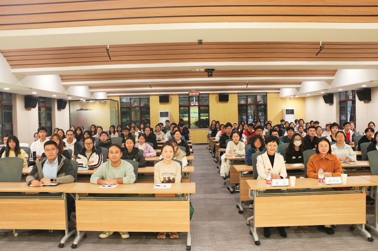 12月12日下午,财政税务学院2024年“青苗”团员培训理论授课在首义校区31号楼一楼报告厅顺利开展。本次活动邀请了华中师范大学马克思主义学院薛惠教授作主题授课。学院党委副书记杨少同,学院学生工作办公室主任韩睿子,分团委书记木拉提·依不拉音木江,本科生辅导员韩鹏以及全体青苗班学员参与学习。活动由杨少同主持。