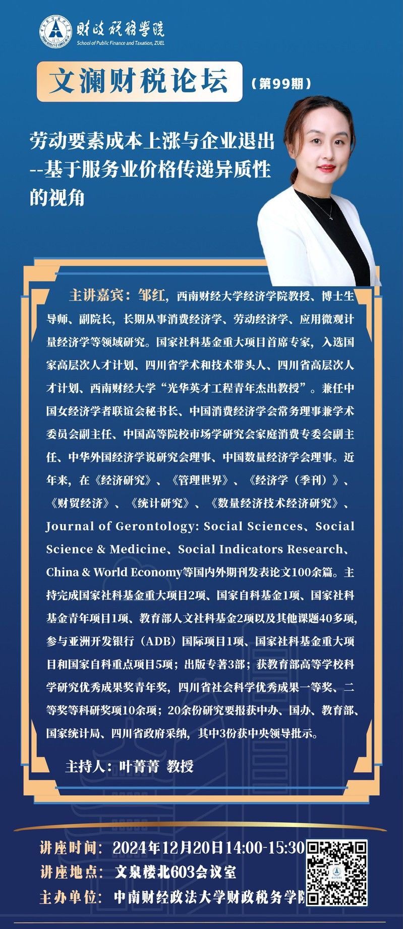 文澜财税论坛(第99期):西南财经大学经济学院邹红教授