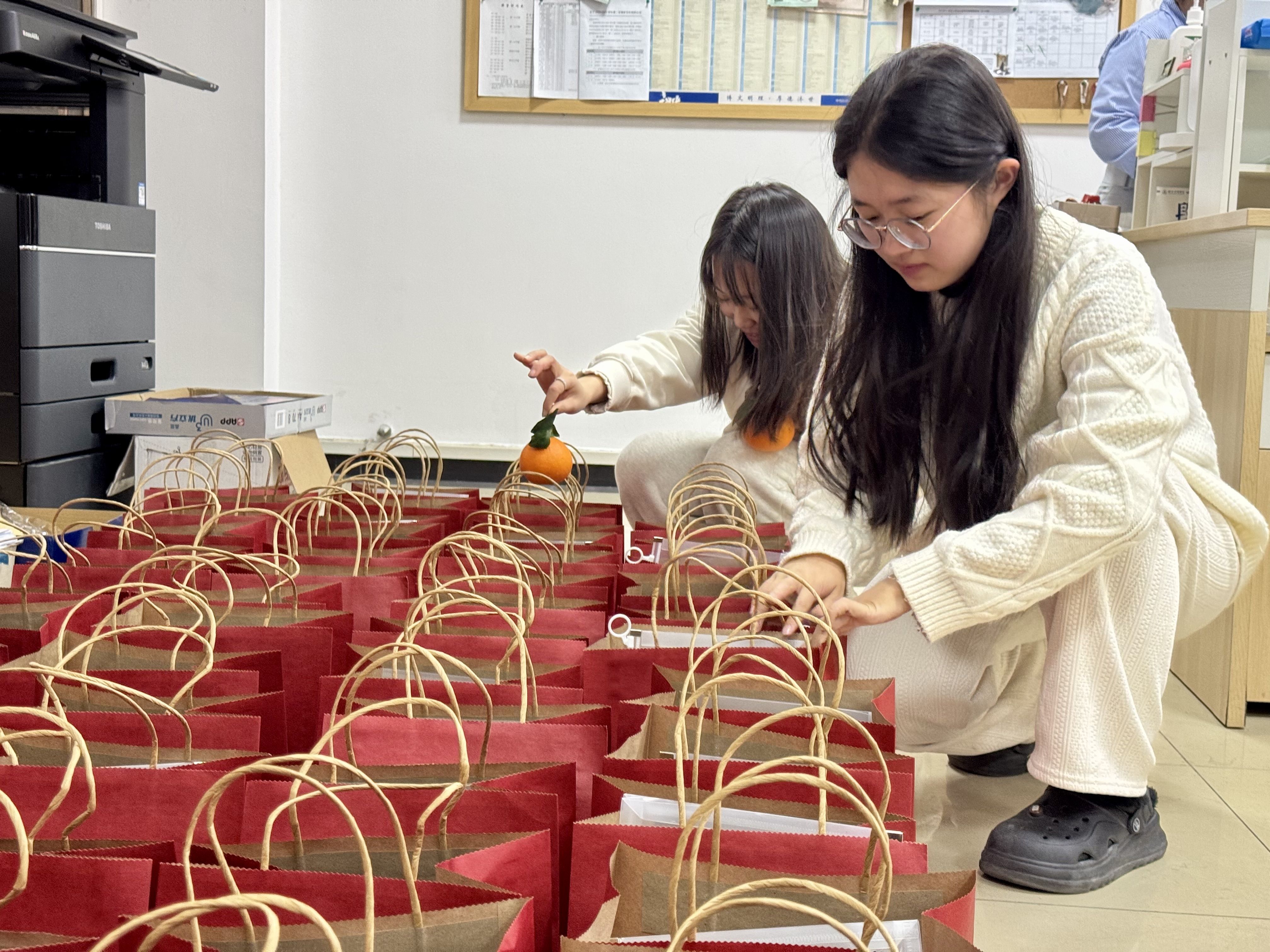 除了饱含深情的贺卡,加油包中还贴心地准备了橙子,寓意着“橙”功上岸,这份小小的水果承载着学院对学子们最美好的祝愿。文具袋里装满了学院对学子们细致入微的关怀与鼓励,确保学子们在考场上能够得心应手,无后顾之忧。考虑到冬日的寒冷,学院还特意为学子们准备了暖宝宝,让温暖时刻陪伴在他们身边,驱散寒冷与紧张。