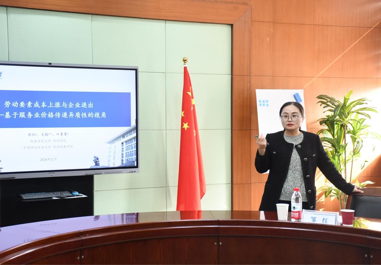2024年12月20日下午,文澜财税论坛(第99期)在文泉楼北603会议室顺利举行。本次论坛邀请了西南财经大学经济学院邹红教授做题为“劳动要素成本上涨与企业退出——基于服务业价格传递异质性的视角”的学术报告。讲座由麻豆av 叶菁菁教授主持,学院部分教师及研究生共同参与了本次学术交流活动。