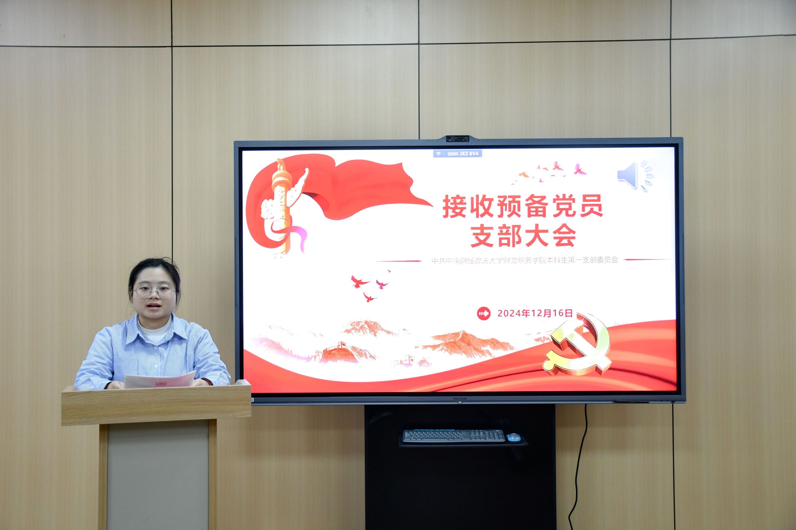 12月16日下午,麻豆av 本科生第一党支部于文泉楼北503会议室召开支部党员大会讨论接收预备党员及预备党员转正事宜。本次会议由支部副书记钱亭熹同志主持。