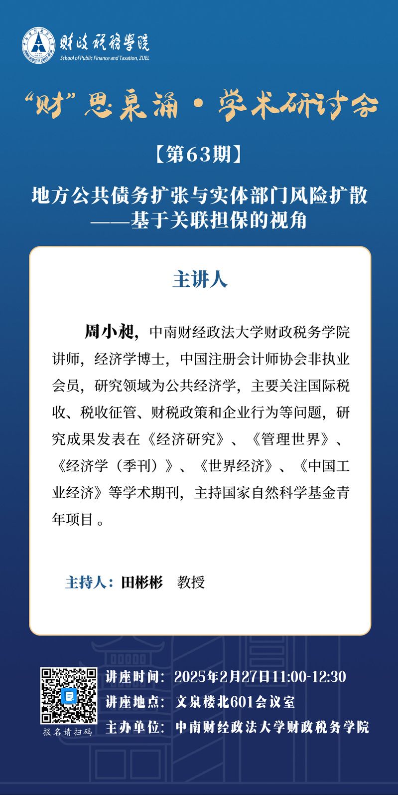 【讲座预告】“财”思泉涌·学术研讨会(第63期)