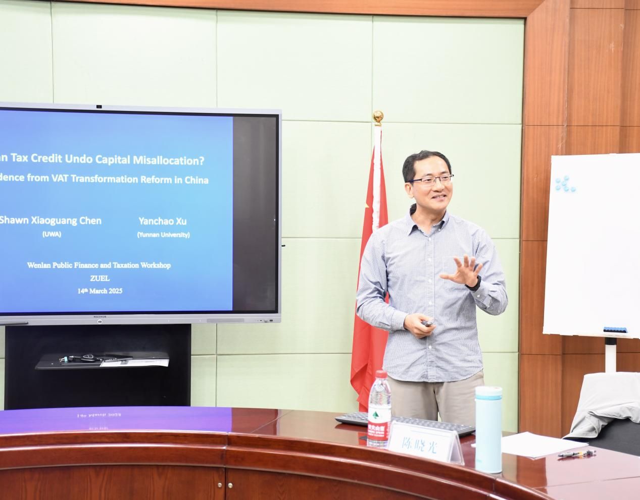 2025年3月14日上午,文澜财税论坛(第102期)在文泉楼北603会议室顺利举行。次论坛邀请了西澳大学商学院陈晓光教授做题为“税收抵免能否扭转资本错配——基于中国增值税转型改革的证据”的学术报告。本次讲座由田彬彬教授主持,学院部分教师及研究生共同参与了本次学术交流活动。