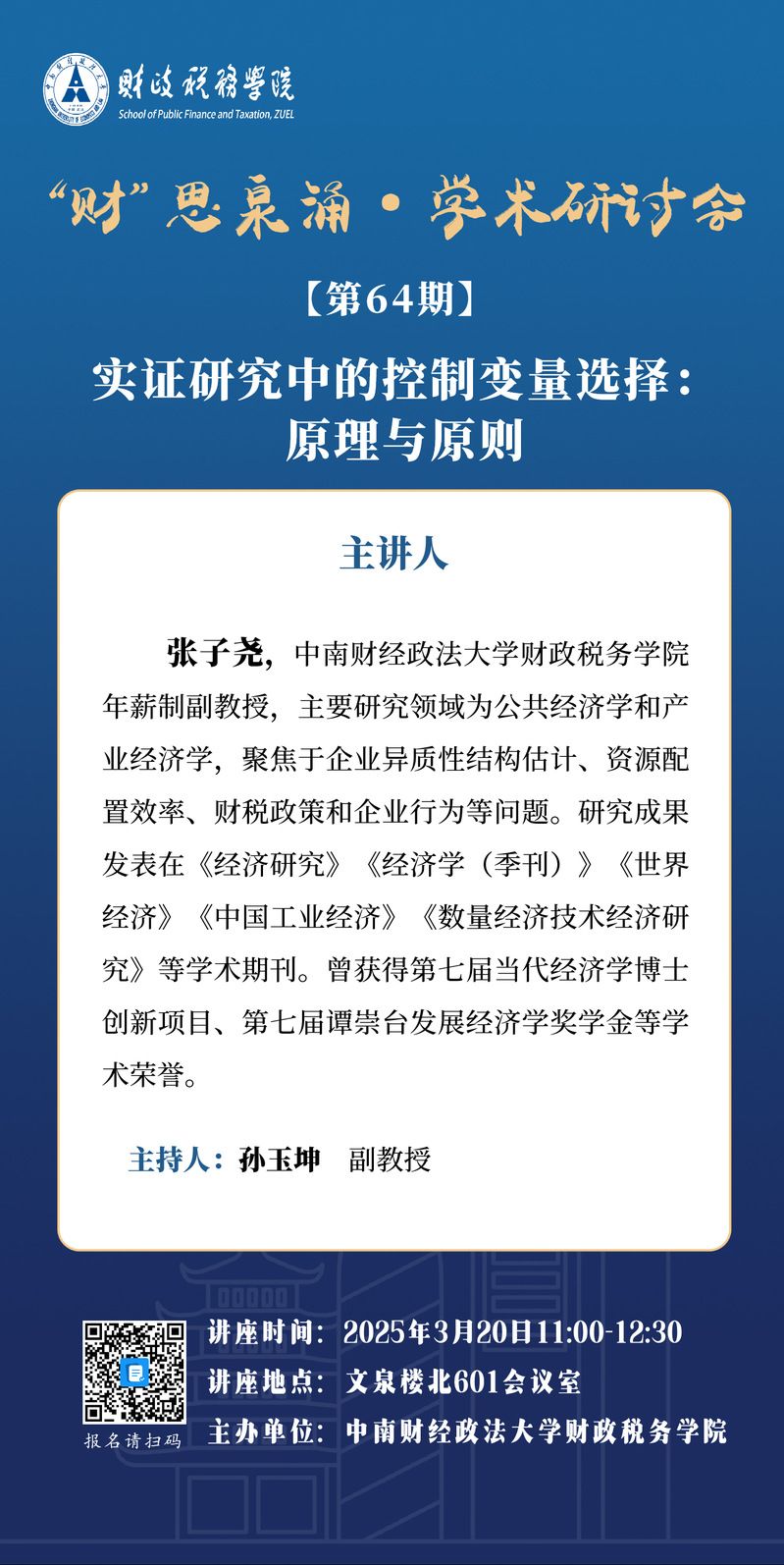 【讲座预告】“财”思泉涌·学术研讨会(第64期)