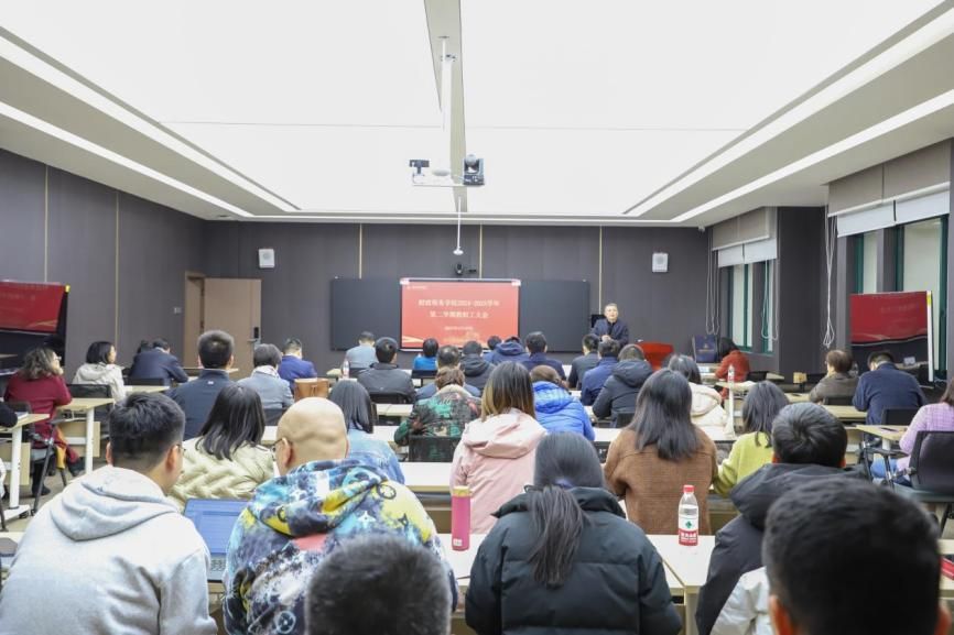袁桂君书记首先传达了学校2025年春季工作会议精神和学校安全稳定工作会议精神,她指出,2025年是“十四五”收官、“十五五”谋划承前启后的关键之年,学院要全面贯彻学校春季工作会议精神和学校安全稳定工作会议精神,按照“一年开局、三年成型、六年成势、十年建功”的总体思路,从谋规划布局、抢重大机遇、抓重点改革、强发展根基四个方面全面推进今年以及中长期学校改革发展重点任务,同时要统筹抓好教师安全稳定、师德师风建设工作,严守师德师风底线,加强师德师风教育。最后,她希望学院教职工加强身心健康管理,注意劳逸结合,以踏实进取的精神、努力坚持的态度做好本职工作,为学院的发展贡献智慧和力量!