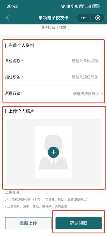 2.根据要求完善个人资料并上传个人照片,然后点击右下角“确认领取”,右图即为领取成功。