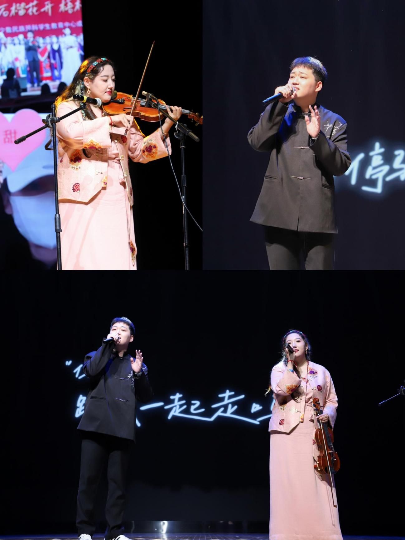 税收2101班罗祥旭同学和国财2201班更尕德永同学合作表演了歌曲《无问》和小提琴独奏《世界赠予我的》,悠扬的歌声与琴声融入四月春日的夜色,带领观众共赴乐与春一起谱写的未来之章。税收2102班于海若、会计2101班沐奕辰等同学献上舞蹈《One spark》,以整齐有力的舞步展现青春风采。2023级税务专硕班戈禹、张诗敏、余子其、张浦琨四位研究生联袂演绎《我们的明天》《步步》歌曲串烧,用歌声寄语毕业生前程似锦。群舞《不想说再见》,纯白裙摆与舞台形成鲜明对比,每一次凝望与转身都定格成离别时刻的绵长情愫和未言之语。