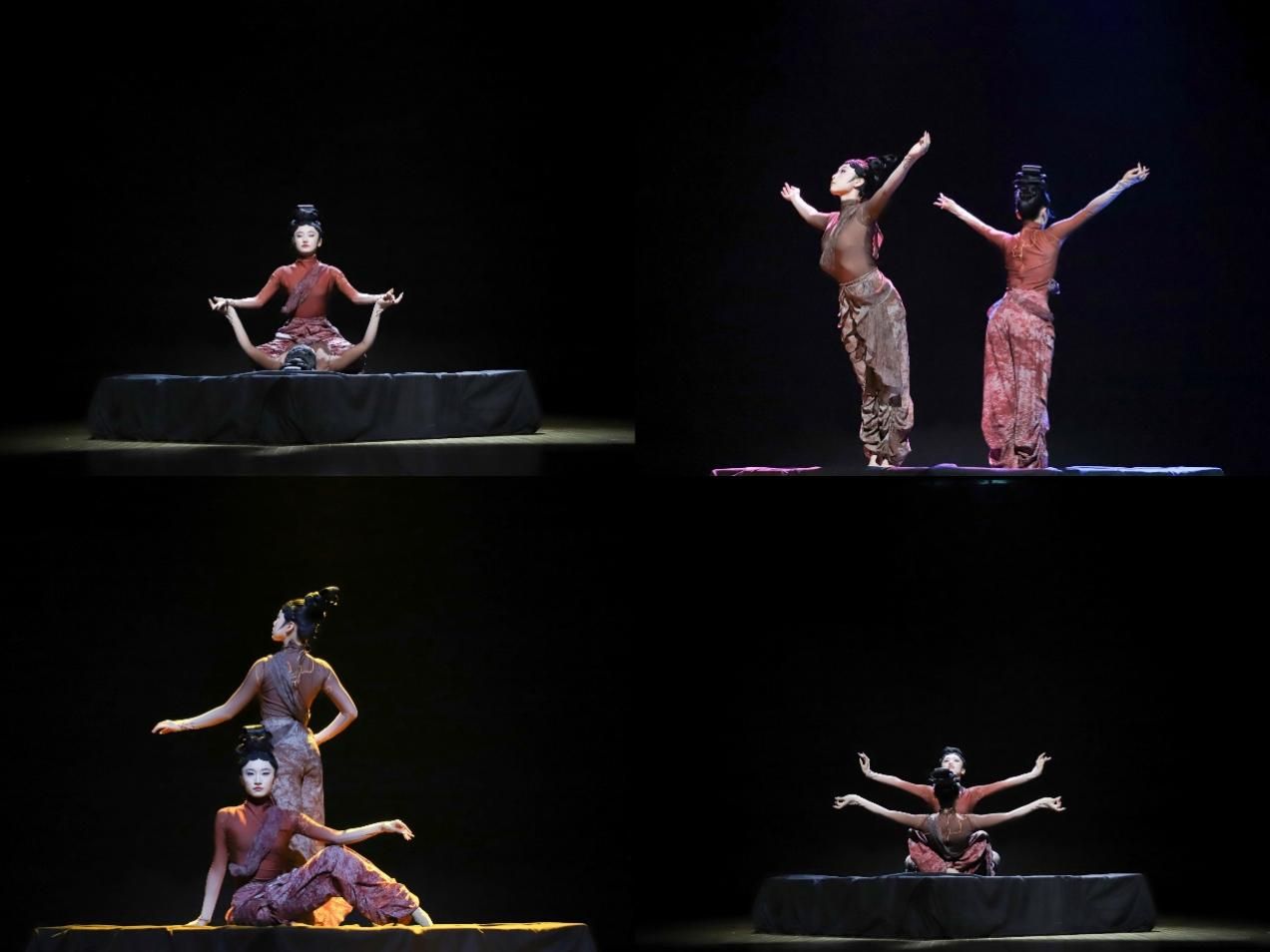 税收2101梁嘉惠、财政2102杨薪玥等同学带来舞蹈《今天开始我们》,以欢快如烟花的舞步,诉说着热爱与希望、青春与梦想。财政2101万长芊、孟明烁同学,财政2102邱盎然、金紫祺同学带来歌曲串烧,用婉转动听的曲调与温情满满的歌词,带领同学们共同回忆同窗岁月。李唯依、邓诗琪带来的舞蹈《佛窟掠影》从复古妆造、灯光伴乐,到精妙的舞技,无一不为现场师生带来精妙绝伦的视听震撼,让人仿佛穿越时光,去亲身邂逅这一场浪漫。