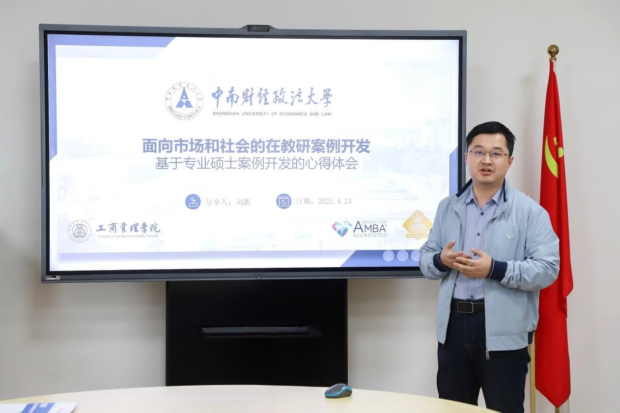 刘凯副教授以“面向市场与社会的教学案例开发——基于专业硕士案例开发的心得体会”为题进行专题分享。他从学科竞赛、课堂教学、科研研究、社会服务、人才培养的需要这五个方面说明了为什么要开发案例,并以东风新能源汽车全产业链数字化转型与升级的案例为例,详细解释了教学案例的开发流程。随后,刘凯副教授同参会老师就“案例开发与论文撰写的异同”、“教学笔记是否需要有针对性”、“案例开发数据来源”等问题进行探讨。