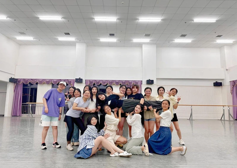 荣誉的背后是汗水的积淀。财税研究生学子们从零基础起步,利用午休与晚间课余时间开展训练。随着赛期临近,训练强度逐步增至每日五六个小时,磨平的舞鞋底和浸透汗水的练功服见证着他们的付出。面对高强度的旋转跳跃和肌肉酸痛,队员们用“激将法”相互打气鼓励,每晚在微信群复盘、调整动作,那些红肿的膝盖与破皮的舞鞋,最终都化作整齐划一的动作绽放在掌声中,经过两个月的高强度训练,财税学子的精彩演绎赢得校内外专业评审以及全场师生的一致认可。