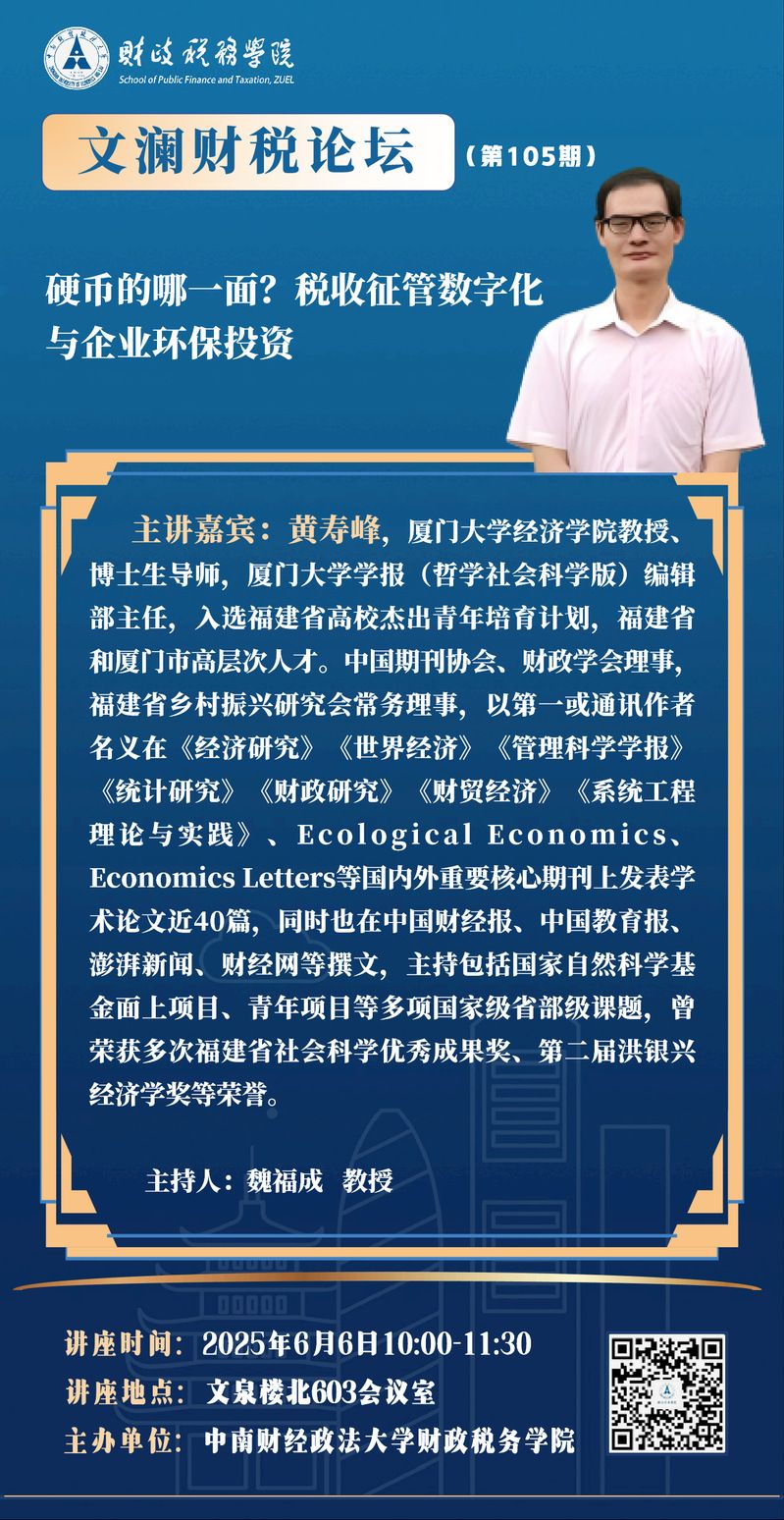文澜财税论坛(第105期):厦门大学经济学院黄寿峰教授