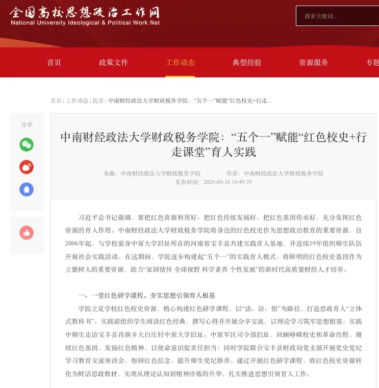 在铸魂育人方面,学院深入开展“五个一”赋能“红色校史+行走课堂”育人实践活动,相关做法获全国高校思政网专题报道,“同一门思政课”稳步推进,努力实现思政育人全覆盖。