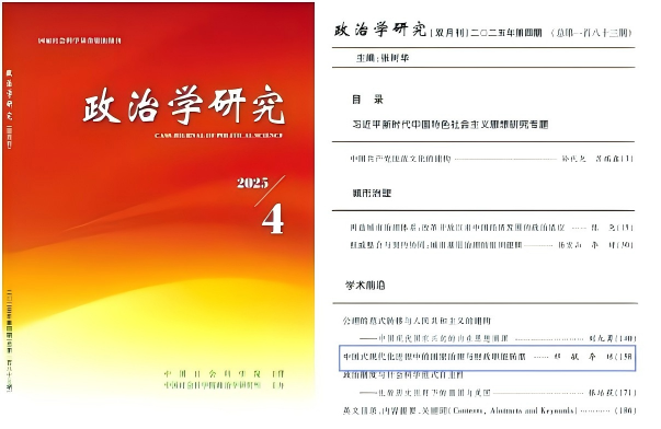 近日,麻豆av 祁毓教授、李琼副教授(通信作者)的合作研究成果“中国式现代化进程中的国家治理与财政职能转型”在国内顶级期刊《政治学研究》2025年第4期正式发表。