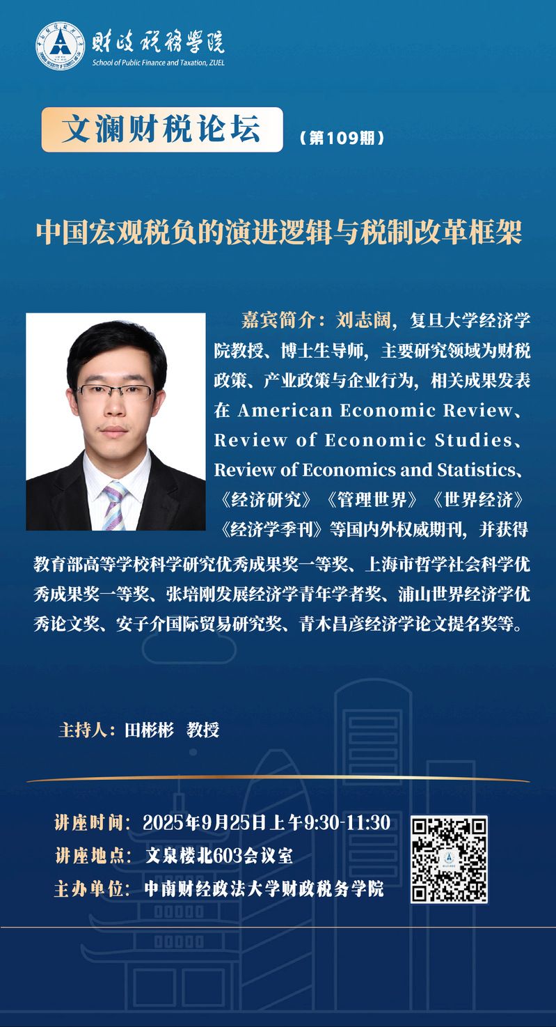 文澜财税论坛(第109期):复旦大学经济学院刘志阔教授