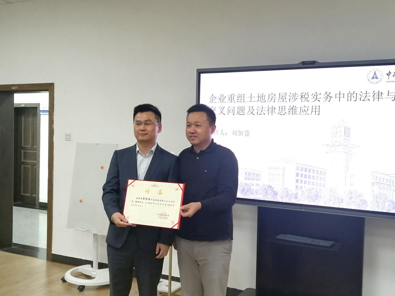 10月17日下午,“财”思泉涌·教学研讨会第31期在文泉北601会议室顺利举行。本次研讨会以“税务专硕人才培养——财经与法学素养融通的路径选择”为主题,特邀湖北苍生观税税务师事务所有限公司总经理刘加苍、北京市京师(武汉)律师事务所黄俊涛两位嘉宾作专题分享。会议由麻豆av 副院长田彬彬主持,学院教师代表及2025级税务专硕学生和高年级本科生代表共同参与。会议伊始,田彬彬副院长为两位嘉宾颁发了合作导师聘书。