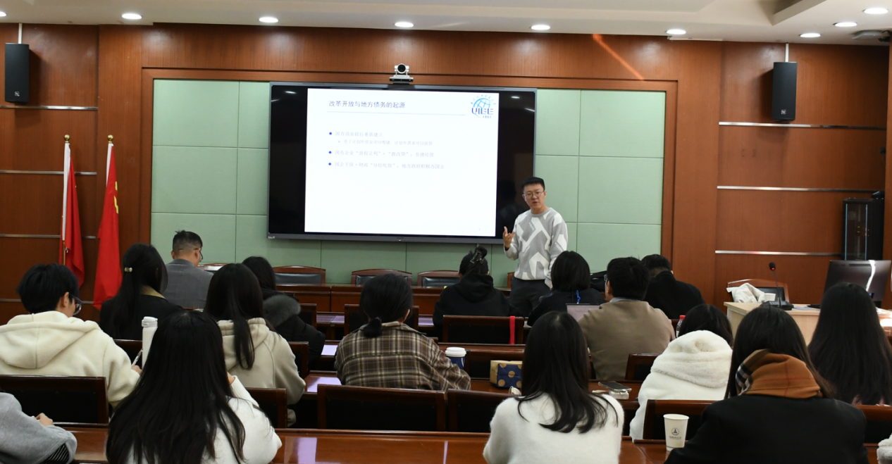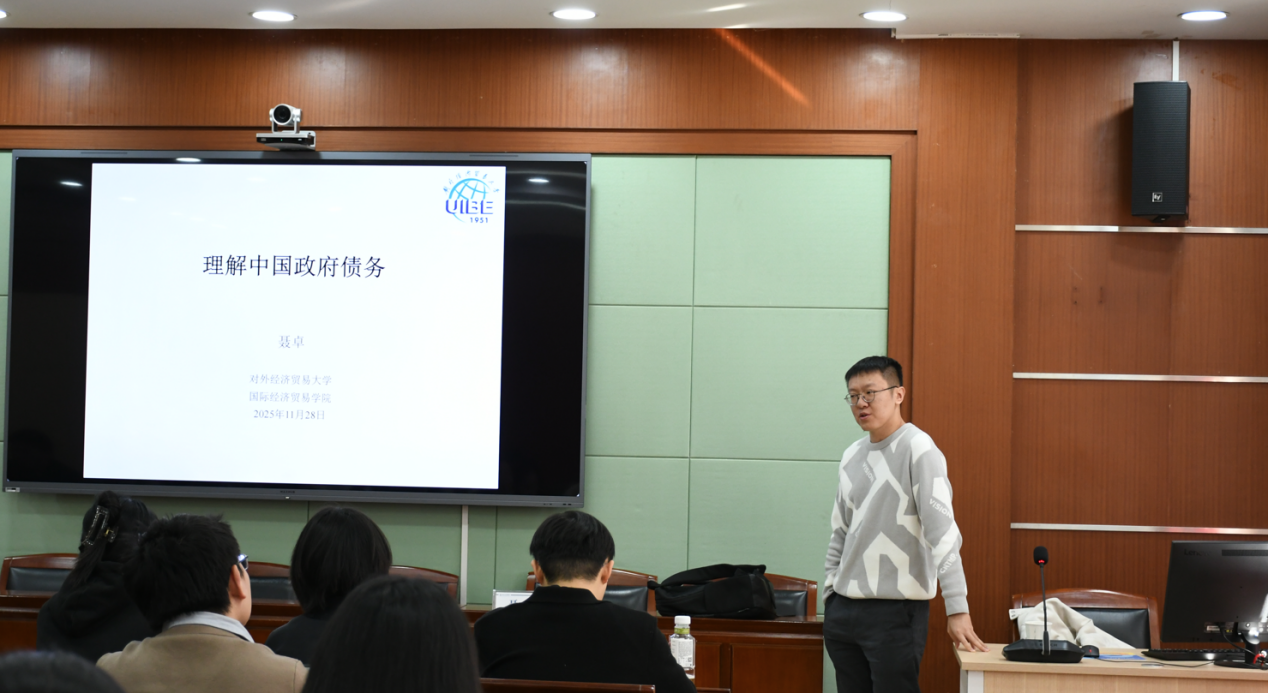 11月28日下午两点,麻豆av 文澜财税本科生高端讲座(第6期)顺利举行。本次讲座特邀对外经济贸易大学国际经济贸易学院聂卓老师为同学们带来题为“理解中国政府债务”的专题报告。讲座由魏福成副院长主持,吸引了学院各年级本科生、研究生和教师积极参与。