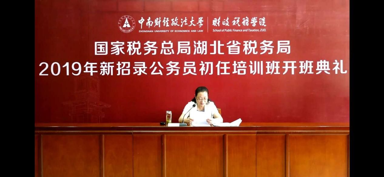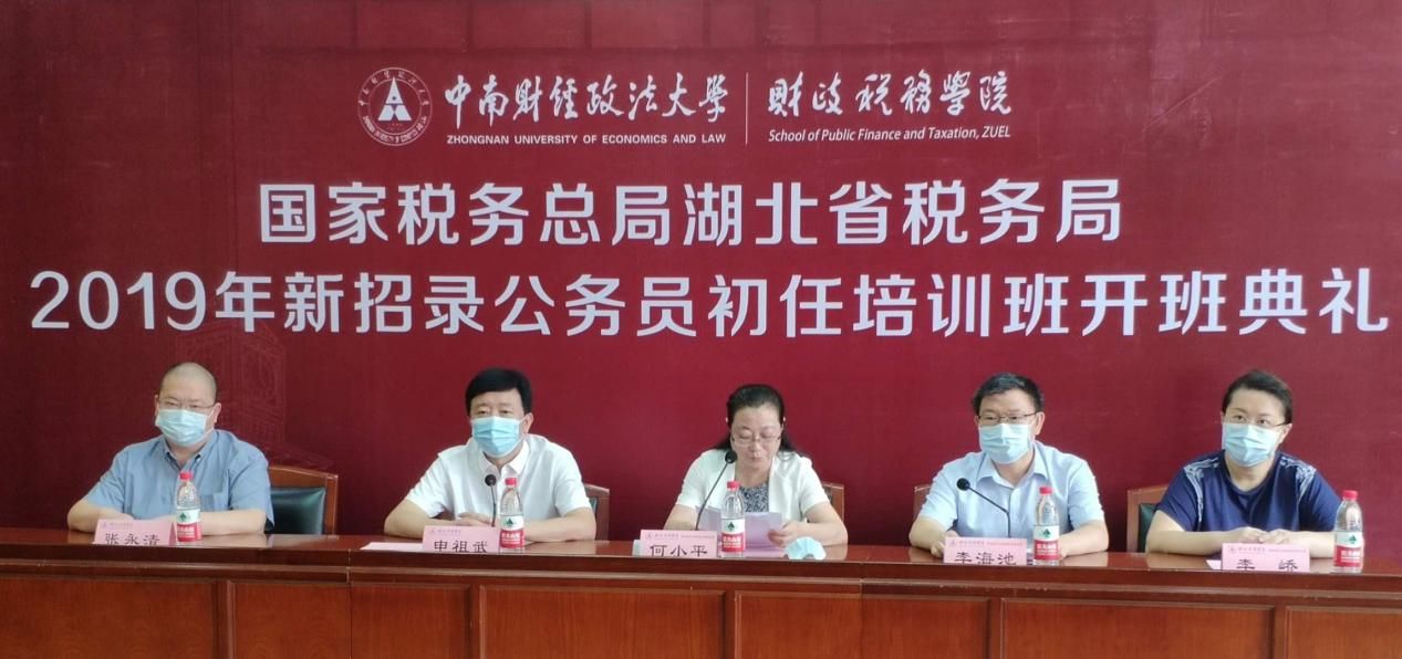 7月14日上午9:40,“国家税务总局湖北省税务局2019年新招录公务员初任培训班开班典礼”在我校南湖校区文泉楼403会议室隆重举行。本次开班典礼采取线上直播的形式。