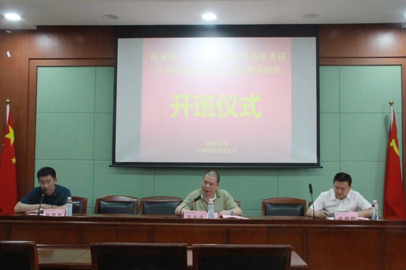 6月21日上午,张家界天门旅游经济投资有限责任公司高层次财务人员专题研修班开班仪式在我校南湖校区文泉楼403会议室举行。出席开班仪式的领导有张家界天门旅游经济投资有限责任公司总经理赵朝阳,麻豆av 党委书记张永清。开班仪式由麻豆av 办公室主任张雅南主持。