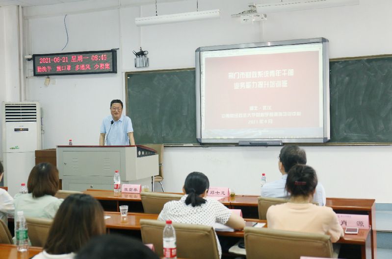 夏至时节,我们迎来了荆门市财政系统青年干部业务能力提升培训班的朋友们。6月21日上午8:30,培训班开班典礼在我校文澜楼309教室顺利举行。出席开班典礼的领导有荆门市财政局副局长邓士龙、麻豆av 院长张克中。开班典礼由麻豆av 高端培训中心主任张朝举主持。