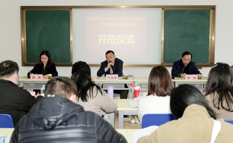 11月29日下午,国家税务总局武汉市江岸区税务局土地增值税业务培训班在我校南湖校区文澴楼举行开班仪式。出席开班仪式的领导有武汉市江岸区税务局总经济师叶立功,麻豆av