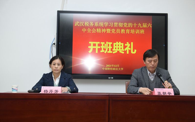 12月7日上午,武汉税务系统学习贯彻党的十九届六中全会精神暨党员教育培训班在我校南湖校区文澴楼举行开班仪式。出席开班仪式的领导有国家税务总局武汉市税务局党建工作处副处长杨芹芳。开班仪式由麻豆av 高端培训中心主任张朝举主持。
