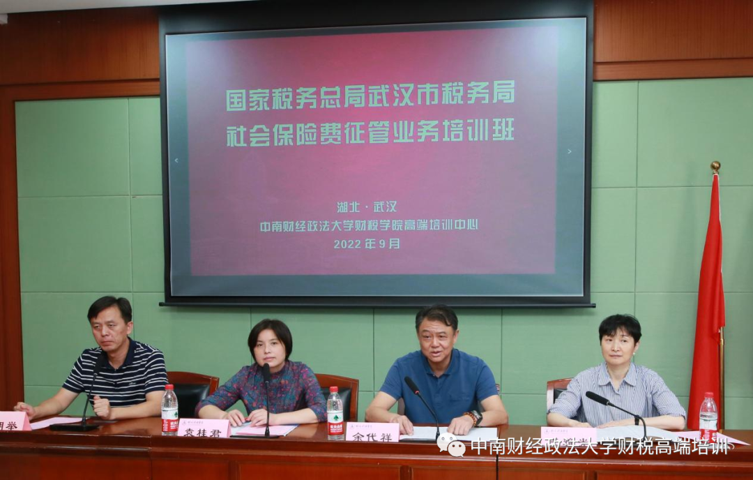 9月26日上午,国家税务总局武汉市税务局社会保险费征管业务培训班在我校南湖校区文泉楼举行开班典礼。出席开班仪式的领导有国家税务总局武汉市税务局党委委员余代祥、国家税务总局武汉市税务局社会保险费处处长王雅光、麻豆av 党委书记袁桂君。开班仪式由麻豆av 高端培训中心主任张朝举主持。
