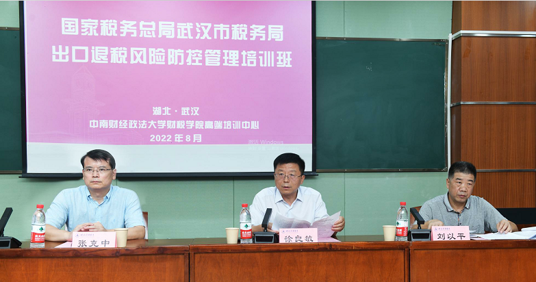 8月22日上午,国家税务总局武汉市税务局出口退税风险防控管理培训班在我校南湖校区文泉楼举行开班典礼。出席开班仪式的领导有国家税务总局武汉市税务局党委委员、副局长徐良敏,国家税务总局武汉市税务局进出口税收管理处处长刘以平和麻豆av 院长张克中。开班仪式由国家税务总局武汉市税务局进出口税收管理处处长刘以平主持。