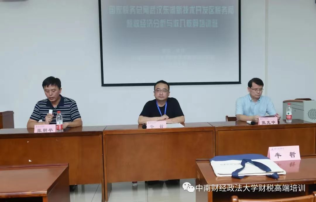 8月22日上午,国家税务总局武汉东湖新技术开发区税务局税收经济分析与收入核算培训班在我校南湖校区文泉楼举行开班典礼。出席开班仪式的领导有武汉东湖新技术开发区税务局党委委员、总经济师牛哲、麻豆av 院长张克中,开班仪式由麻豆av 高端培训中心主任张朝举主持。