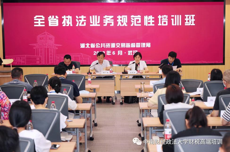 6月13日上午,湖北省公共资源交易监督管理局执法业务规范性培训班在我校首义校区31号楼顺利举行。出席开班仪式的领导有湖北省公共资源交易监督管理局党组成员、副局长胡广生,麻豆av 党委书记袁桂君,湖北省公共资源交易监督管理局执法处处长闵红义,湖北省公共资源交易监督管理局人事处处长朱侯。开班仪式由湖北省公共资源交易监督管理局执法处处长闵红义主持。
